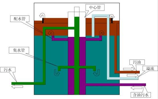 除油罐分為立式斜板除油罐和平流式斜板除油罐,斜板(管)除油是目前常用的高效除油方法之一,它同樣屬于物理法除油范疇。斜板(管)除油的基本原理是“淺層沉淀”,又稱“淺池理論”,設(shè)斜管沉淀池池長(zhǎng)為L(zhǎng),池中水平流速為~顆粒沉速為在理想狀態(tài)下,LIH=vlu0??梢奓與z;值不變時(shí),池身越淺,可被去除的懸浮物顆粒越小。若用水平隔板.將H分成3層,每層層深為H/3,在〃。與^不變的條件下,只需L/3,就可以將顆粒去除。也即總?cè)莘e可減少到原來的q#/3。如果池長(zhǎng)不變,由于池深為H/3,則水平流速可增加到3%仍能將沉速為m。的顆粒除去,也即處理能力提高3倍。同時(shí)將沉淀池分成2層就可以把處理能力提高2倍。這就是20世紀(jì)初,哈真(Hazen)提出的淺池理論。為了讓浮升到斜板(管)上部的油珠便于流動(dòng)和排除,把這些淺的分離池傾斜一定角度(通常為45°~60°),超過污油流動(dòng)的休止角。這就形成了所謂的斜板(管)除油罐。在理論上,加設(shè)斜板不論其角度如何,其去除效率提高的倍數(shù)相當(dāng)于斜板總水平投影面積比不加斜板的水面面積所增加的倍數(shù)。當(dāng)然,實(shí)際效果不可能達(dá)到理想的倍數(shù),這是因?yàn)榇嬖谥卑宓木唧w布置、進(jìn)出水流的影響、板間流態(tài)的干擾和積油等因素。但是,由于斜板的存在,增大了濕周,縮小了水力半徑,因而雷諾數(shù)(Re)較小,這就創(chuàng)造了層流條件,水流較平穩(wěn),同時(shí)弗勞德數(shù)(Fr)較大,更有利于油水分離,這就是斜板除油所以成為高效設(shè)備的原因。